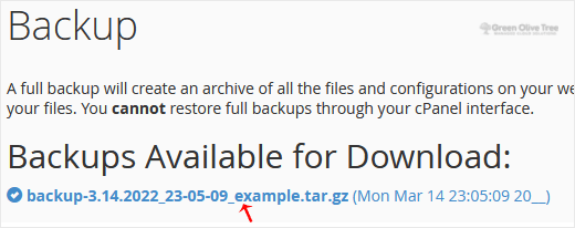 3. Under Full Backup, click on Download a Full Website backup.