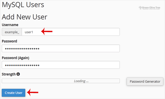 3. Under MySQL Users, in the Username field, enter the new username you want to create.