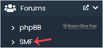 4. On the left side, locate the Forums category. Click on it and then on the SMF link that appears.