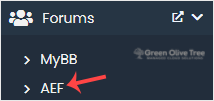 4. On the left side, locate the Forums category. Click on it and then on the AEF link that appears.