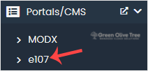 4. On the left side, locate the Portal/CMS category. Click on it and then on the e107 link that appears.