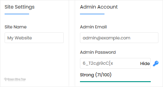 Note: Copy the admin username and password to Notepad. You will need those to access the admin area of your Pluck website later.