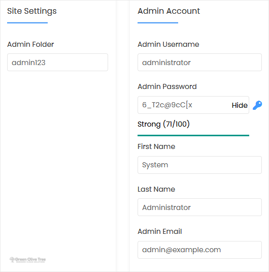- Admin Username: Your new OctoberCMS username (for security reasons, do not use the administrator or the admin username).