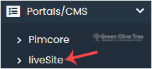 4. On the left side, locate the Portal/CMS category. Click on it and then on the liveSite link that appears.